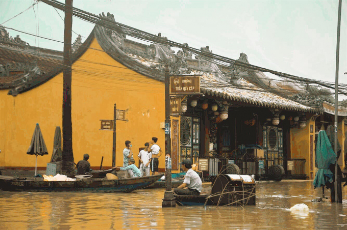 Hoàn lưu sau bão số 9 gây mưa lớn, làm nước dâng nhanh khiến các tuyến đường trung tâm ở phố cổ Hội An (Quảng Nam) ngập nặng.