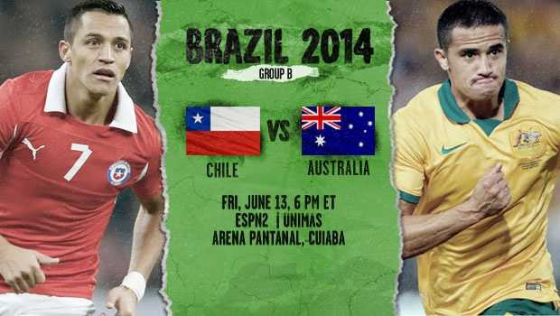 2' Tim Cahill là ngôi sao sáng nhất bên phía Australia. Ở bên kia chiến tuyến, Alexis Sanchez cùng Artudo Vidal gánh vác niềm hi vọng của đội bóng Nam Mỹ.