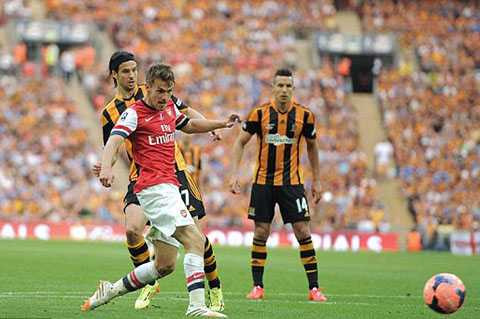 99' Pha bật tường rất hay giữa Ramsey và Giroud. Tiền vệ xứ Wales đã có cơ hội sút bóng thuận lợi, nhưng anh lại không đưa bóng đi vào lưới.