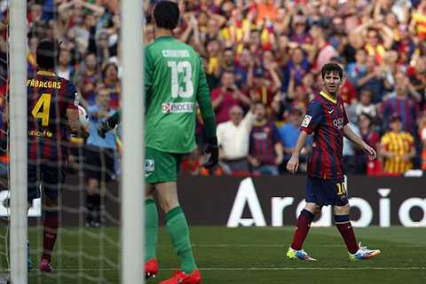 80' Nỗ lực tuyệt vời của Messi khi đội trưởng của tuyển Argentina dẫn bóng xâm nhập hàng thủ Atletico. Tuy nhiên cú sút của anh chưa đủ khó để hạ Courtois.