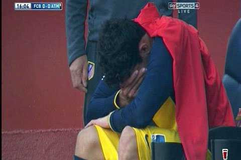 16' Diego Costa buộc phải rời sân, nhường chỗ cho Adrian. Chân sút sinh năm 1988 đã khóc sau khi ngồi trên băng ghế dự bị.