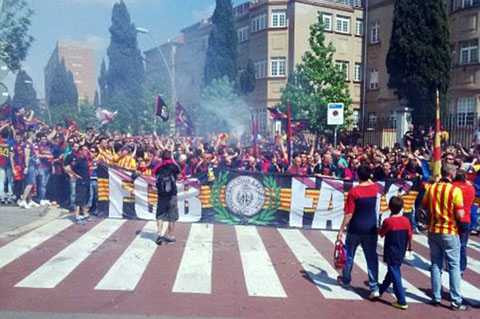 22h: CĐV Barca đã kéo đến sân Nou Camp rất đông. Dù mùa giải này không thành công nhưng nói gì thì nói, đội bóng con cưng của các cules vẫn còn nguyên cơ hội vô địch. Đó cũng là điều để hy vọng hơn là nhìn chức vô địch dễ dàng đến thành Madrid.