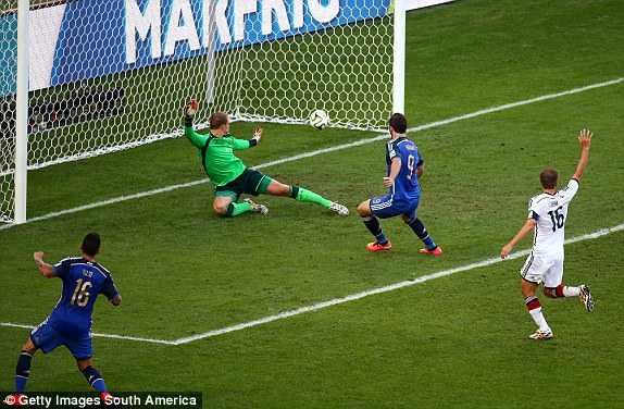 Dù vậy, hết hai hiệp chính, cầu thủ hai đội chấp nhận rời sân với tỷ số hòa. Kết quả ấy tưởng như sẽ kéo dài hết hai hiệp phụ thì Goetze đột ngột xuất hiện, đón quả tạt vừa tầm từ Schurrle, bay người vô lê ghi bàn thắng duy nhất mang chiếc cúp vàng về nước Đức.