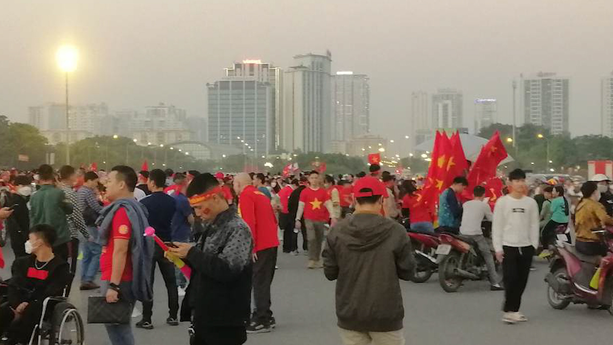 Chiều tối 13/1, hàng nghìn cổ động viên đổ về sân Mỹ Đình xem trận chung kết lượt đi AFF Cup 2022 giữa Việt Nam và Thái Lan.