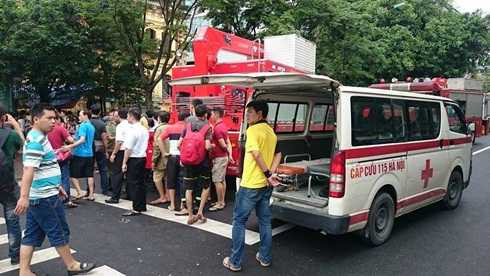 14h40': Đã có 5 người được cứu ra ngoài, trong đó có hai người bị thương ở chân, được chuyển đến bệnh viện Việt Đức cấp cứu.