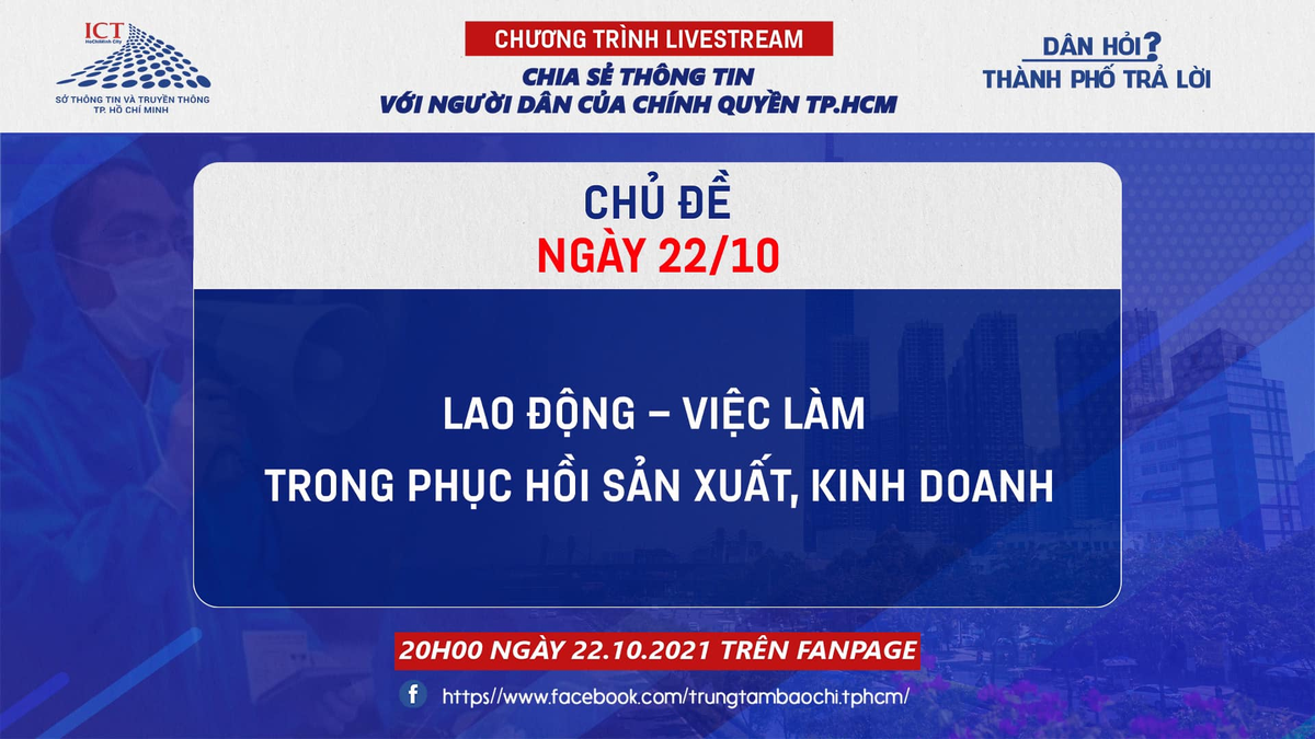 Chương trình livestream "Dân hỏi - Thành phố trả lời" phát sóng vào lúc 20h, với chủ đề "Lao động - việc làm trong phục hồi sản xuất, kinh doanh".