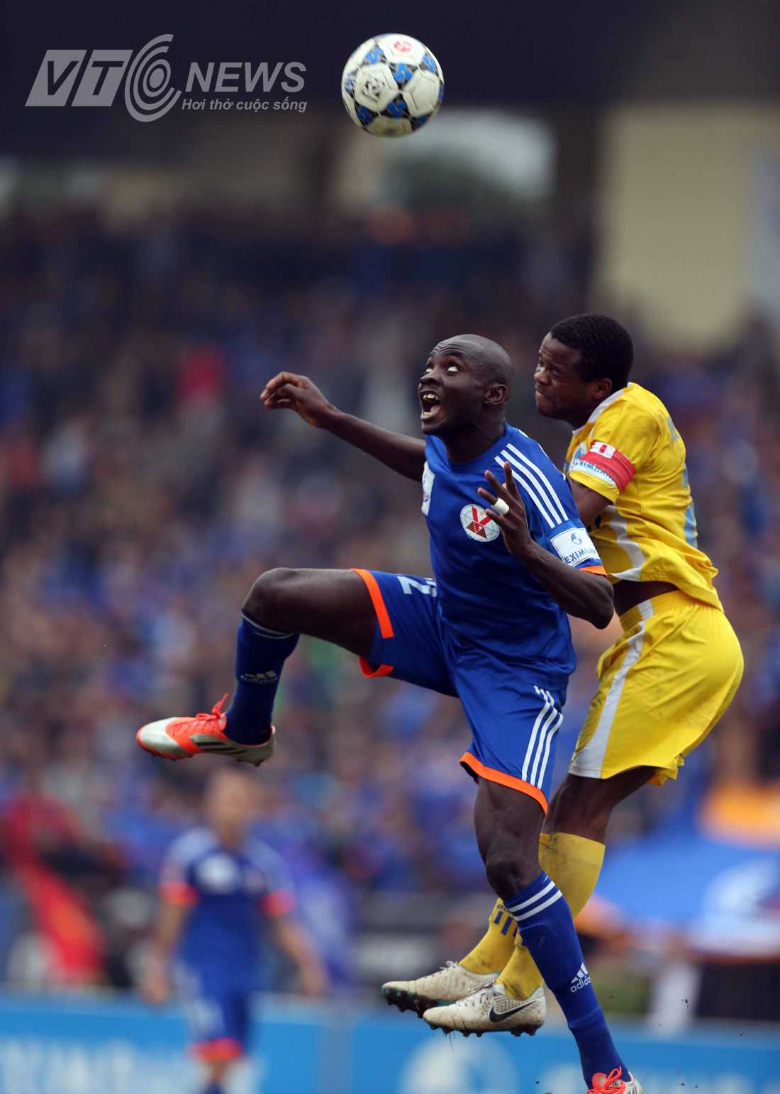 | Tiền đạo Uche (xanh) bỏ lỡ nhiều cơ hội của đội chủ nhà (Ảnh: Quang Minh) |