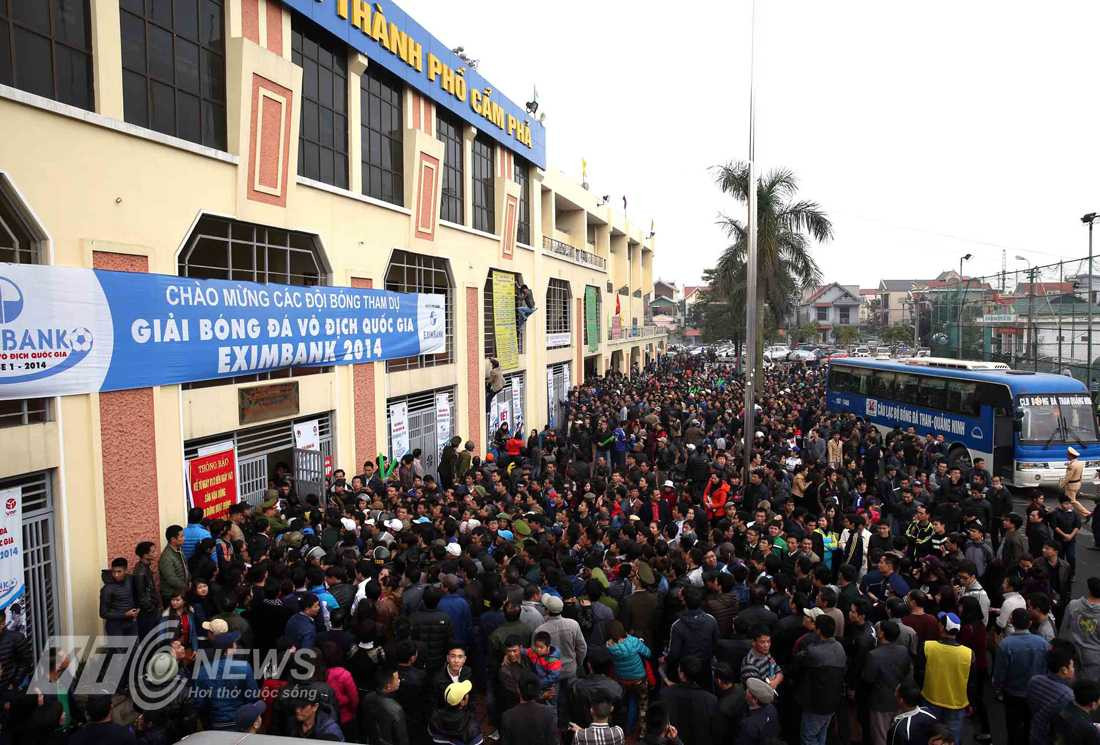 | Bên ngoài sân Cẩm Phả trước trận đấu (Ảnh: Quang Minh) |
