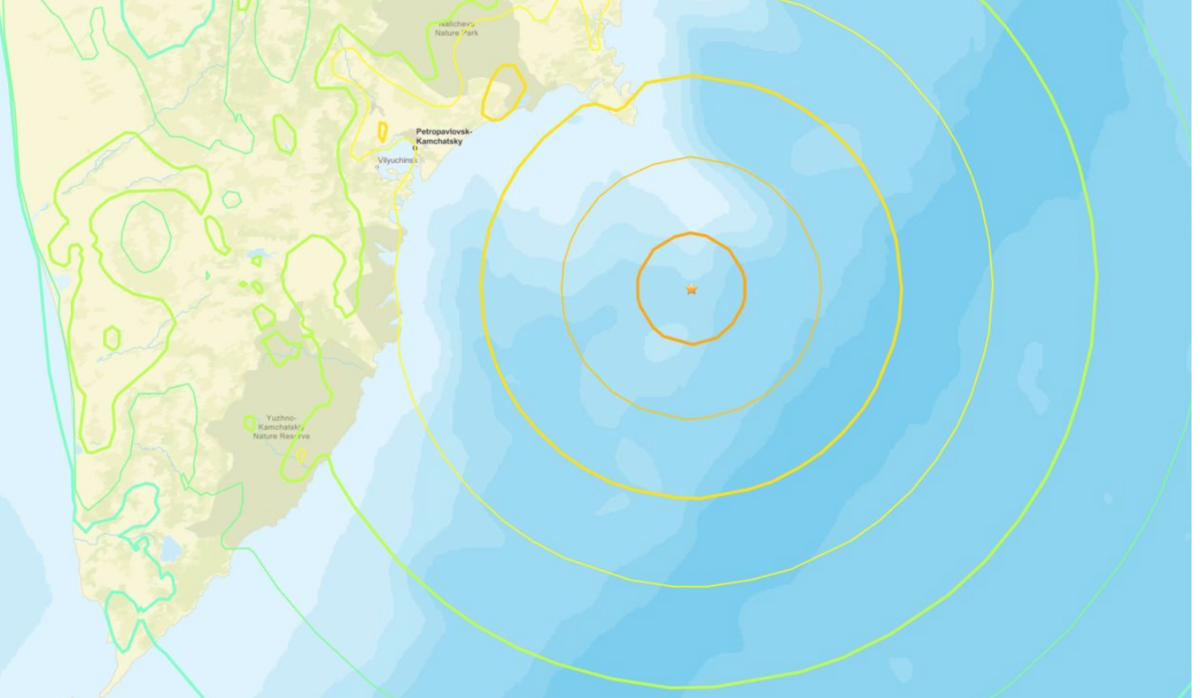 Theo Bộ Tình trạng khẩn cấp Nga (EMERCOM), trận động đất xảy với độ lớn ban đầu đo được là 8,0 độ Richter. Tâm chấn nằm ngoài khơi vùng biển phía đông Kamchatka, ở độ sâu khoảng 40 km.