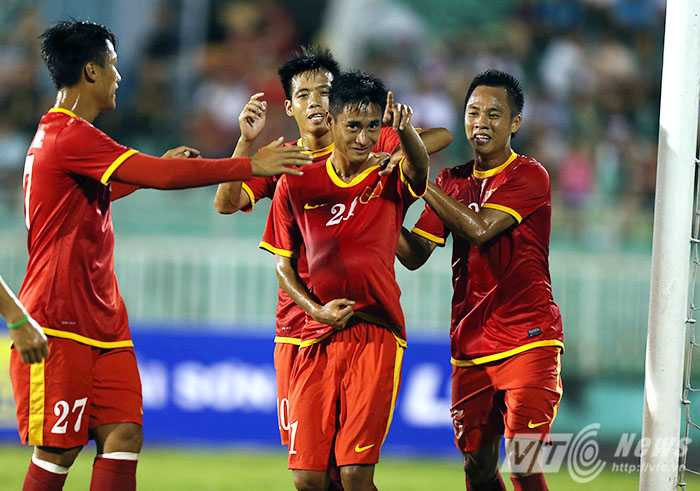 ĐT Việt Nam nhanh chóng ép sân và ghi liền 3 bàn thắng trong vòng 17 phút đầu tiên do công của Văn Quyết và cú đúp của Minh Tuấn.