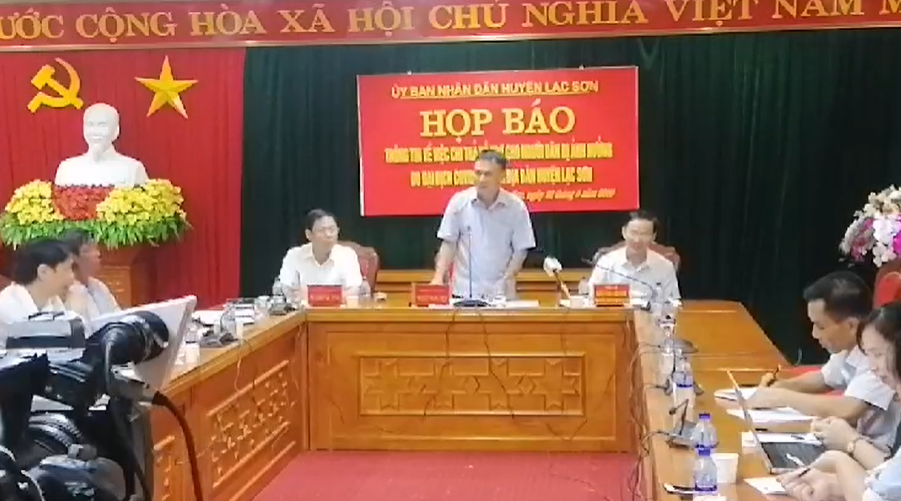 UBND Huyện Lạc Sơn, Hòa Bình họp báo thông tin về việc chi trả hỗ trợ cho người dân bị ảnh hưởng bởi COVID-19.