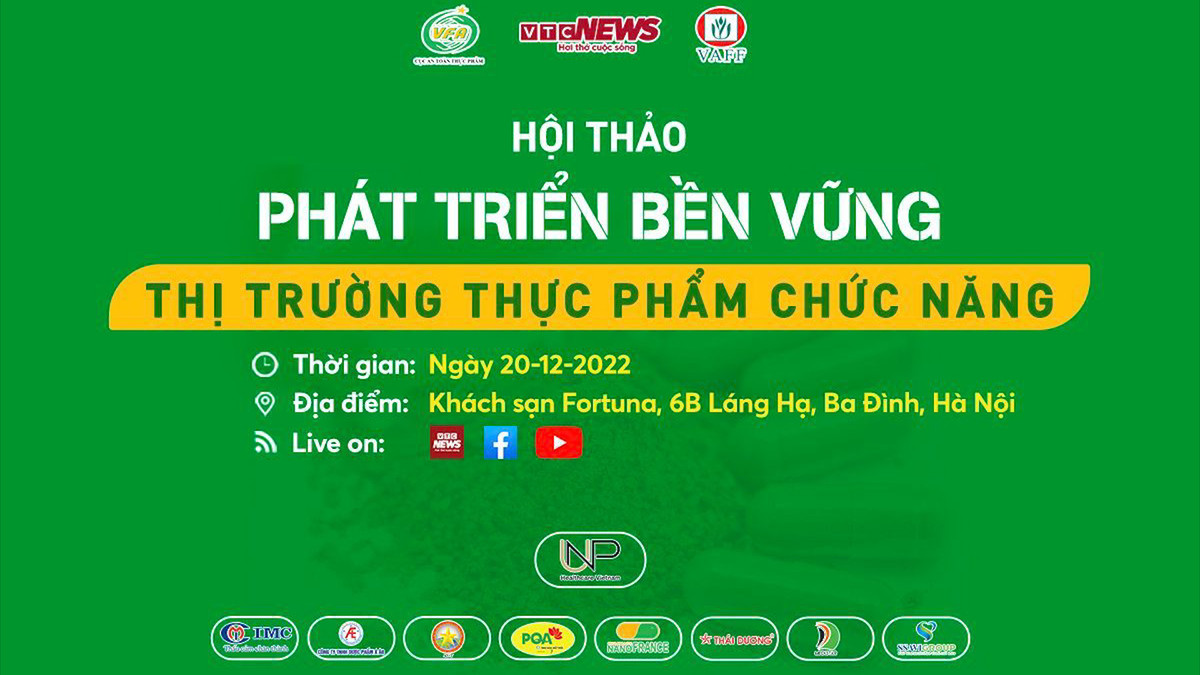 Báo điện tử VTC News tổ chức hội thảo với chủ đề "Phát triển bền vững thị trường thực phẩm chức năng" vào 9h ngày 20/12/2022 tại Hà Nội.