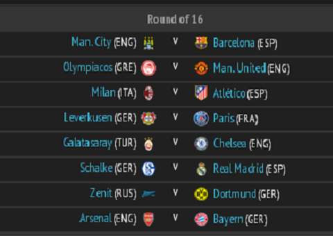 Ngược lại, Arsenal, Man City, Real Madrid, Barca và cả ĐKVĐ Bayern Munich đều có thể sẽ bước vào những cuộc chiến "long tóc gáy". Dưới đây là danh sách những đối thủ có thể của các đại gia ở vòng đấu knock-out