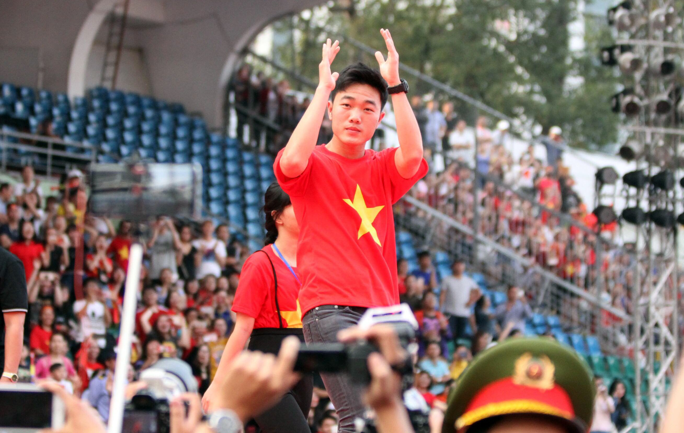 | 16h10' CĐV cảm ơn Lương Xuân Trường và các cầu thủ U23 Việt Nam. ![]() |