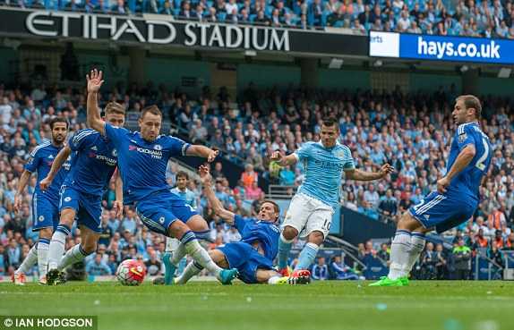 16' Không vào... Tiếp tục là tình huống băng cắt trước mặt hai trung vệ Chelsea rồi ra chân chuẩn xác của Aguero, tiếc là Begovic vẫn là người chiến thắng. Hàng phòng ngự Chelsea đang chơi cực kỳ tồi tệ, hai tiền vệ phòng ngự đang để xổng những tiền vệ xuất sắc nhất bên phía đội chủ nhà.