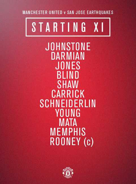 9h35': Đội hình xuất phát của Man Utd được Louis van Gaal gọi là XI cùng thông điệp trường kỳ, nhẫn lại để thử nghiệm. Ông giữ nguyên đội hình xuất phát như ở trận gặp Club America tuần trước.