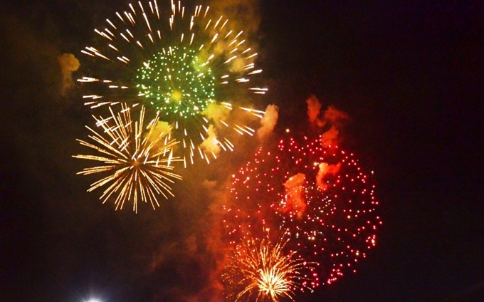 Người dân đứng xem bắn pháo hoa ở khu vực ngoài Công viên Thống Nhất, Hà Nội.