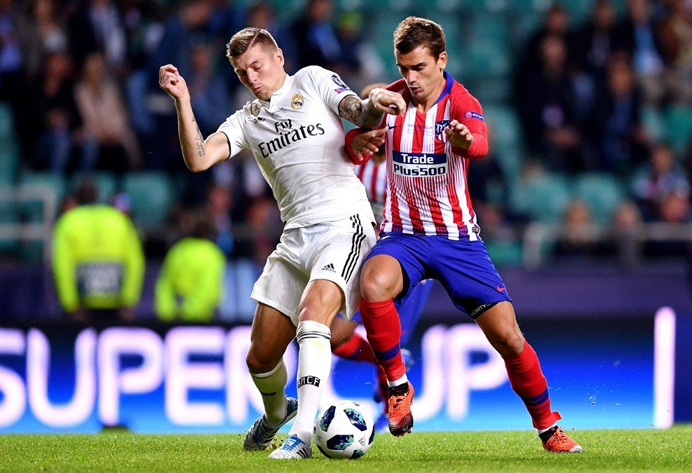 | 57' Real có sự thay đổi người. Modric vào sân để thế chỗ Asensio. Atletico có sự thay đổi người. Correa vào sân để thế chỗ Griezmann. ![]() Griezmann (phải) chơi mờ nhạt trong trận này. |