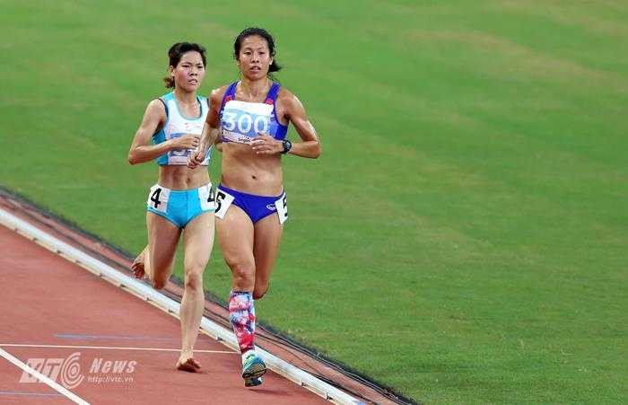 17h15: Phạm Thị Huệ chạy chân đất nỗ lực bám đuổi trên đường chạy 10000m nữ. Tuy nhiên cô chỉ giành HCB