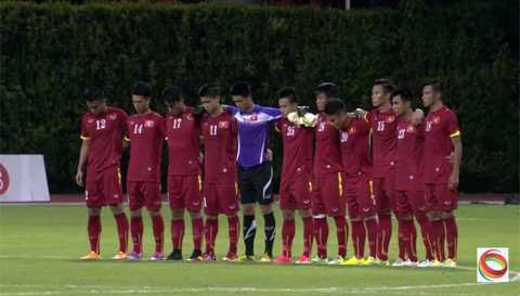 | Các cầu thủ U23 Việt Nam thực hiện nghi thức chào cờ. |