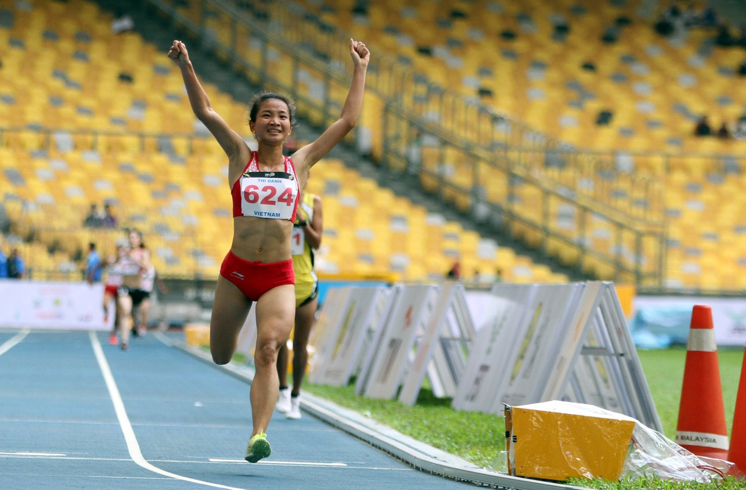 | 16h10 Nguyễn Thị Oanh về nhất chạy 5000m, đoạt HCV. Đội điền kinh có liền 3 HCV trong buổi chiều. ![]() Nguyễn Thị Oanh về đích đầu tiên. (Ảnh: Hà Thành) ![]() Nguyễn Thị Oanh vô địch. Phạm Thị Huệ nhận HCB. (Ảnh: Hà Thành) |