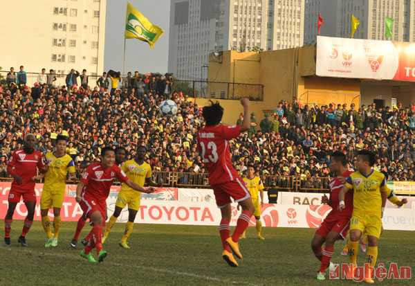| SLNA (áo vàng) từng đánh bại Hải Phòng 2-1 ở ngày ra quân mùa giải 2013 |