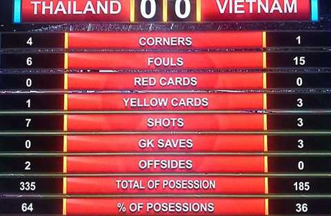 Số liệu cho thấy Việt Nam hoàn toàn lép vế trước Thái Lan trong hiệp 1