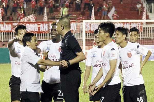Phút 80, trọng tài Nguyễn Trọng Thư cho TP.HCM hưởng 11m. Cả đội Long An bỏ ra ngoài sân phản ứng trọng tài. Sau khoảng 10 phút, cả đội Long An trở lại sân nhưng đứng yên, mặc cho cầu thủ TP.HCM ghi thêm 2 bàn, ấn định tỷ số 5-2.
