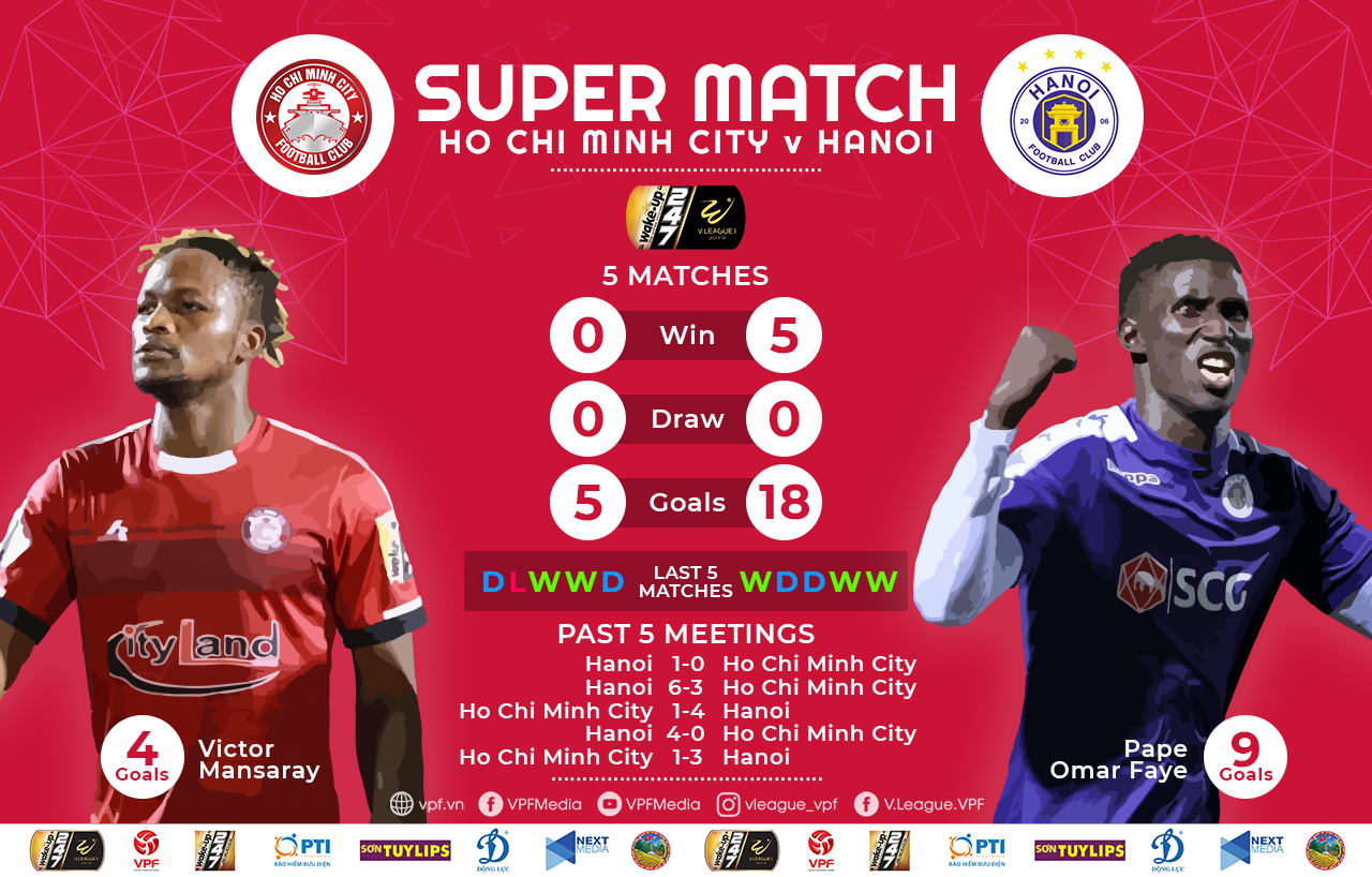 Trực tiếp trận TPHCM vs Hà Nội FC từ 19h (sân Thống Nhất, TPHCM)