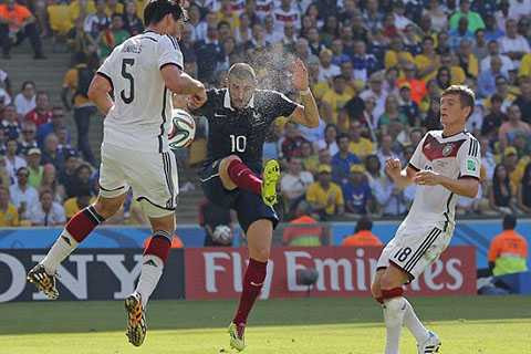 50' Pháp được hưởng quả đá phạt khá giống với tình huống mà Đức ghi bàn trong hiệp 1. Evra đã có cơ hội dứt điểm cận thành nhưng hậu vệ Man Utd lại đánh đầu trượt