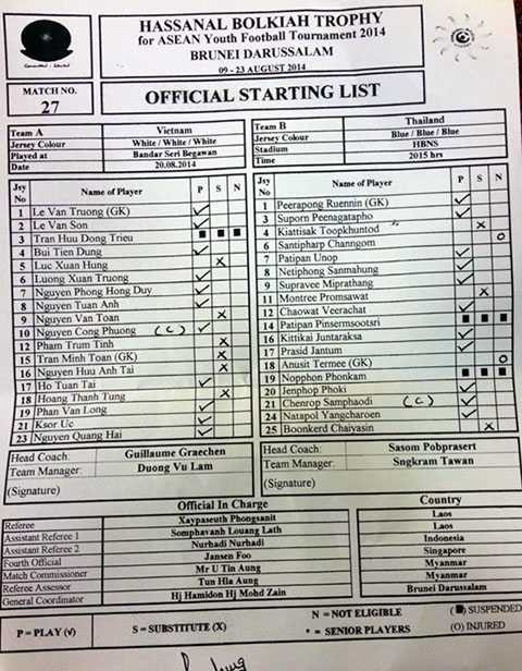 U19 Thái Lan: Runennin; Peenagatapho, Unop, Sanmahung, Miprathang, Veerachat, Juntaraksa, Jantum, Phoki, Samphaodi, Yangcharoen.