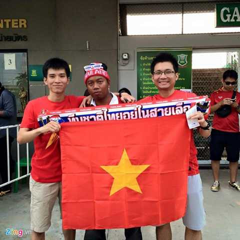 | CĐV Việt Nam và Thái Lan chụp ảnh kỷ niệm trước khi vào sân (Ảnh: Zing.vn) |