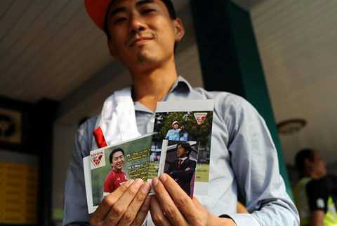 | Anh Yoshihiro Okui, người Nhật đang làm việc tại Bangkok, đến cổ vũ cho U23 Việt Nam (Ảnh: Zing.vn) |