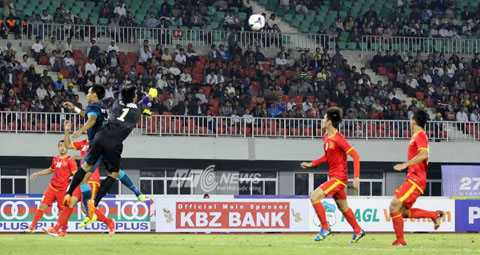 11' Nguy hiểm! Một cú sút xa từ ngoài cự ly 25m của U23 Singapore. Bóng đi cách khung thành của Bửu Ngọc chỉ vài chục cm.