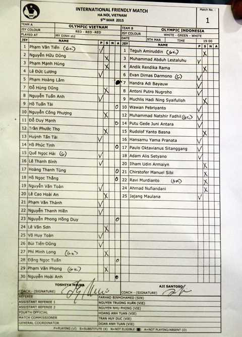 18h30': Công Phượng dự bị. Trong khi đó "thần đồng" của U23 Indonesia là Evan Dimas xuất phát ngay từ đầu trong vai trò đội trưởng.