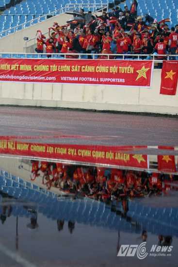 17h30': Trời mưa lạnh khiến cho việc khán giả tới theo dõi trận đấu bị ảnh hưởng rất lớn. Trong sân, các khán đài mới chỉ lác đác vài CĐV.