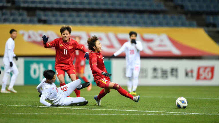 - Tuyển nữ Việt Nam sẽ đi tiếp nếu thắng Myanmar. Trong trường hợp hoà, tuyển nữ Việt Nam thắng, hoà hoặc thua Hàn Quốc dưới 7 bàn là đi tiếp.