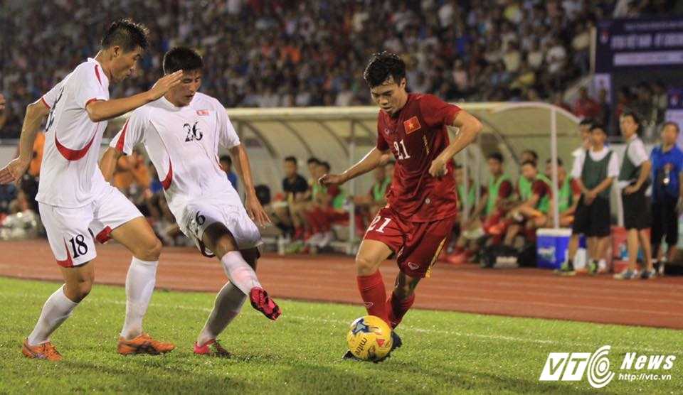 | 15' Vào... 1-0 cho Triều Tiên. Pak Kwang-ryong ghi bàn mở tỷ số. Bàn thua khá dễ dàng của tuyển Việt Nam. Chỉ cần 3 đường chuyền nhanh, Triều Tiên đã xuyên phá được hàng thủ Việt Nam khi mà cả Hoàng Thịnh, Tuấn Anh, Quế Ngọc Hải đều không thể theo được tiền đạo đội khách. |