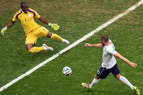 76' Bóng chạm xà ngang! Liên tiếp 2 cú dứt điểm của ĐT Pháp do Benzema và Valbuena thực hiện. Pha sú bóng đầu tiên, hậu vệ Nigeria đã cứu bóng ngay trên vạch vôi. Còn ở tình huống thứ hai, bongs thậm chí đã dội xà ngang.