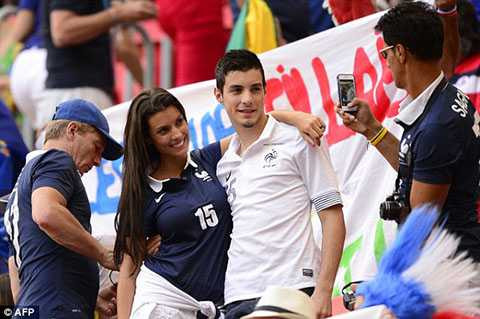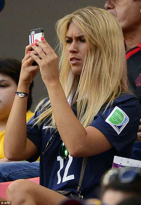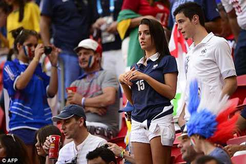 22h52: Dàn WAGs của ĐT Pháp, nổi bật là cô vợ Ludivine Sagna của hậu vệ phải Bacary Sagna khoe sắc trên khán đài