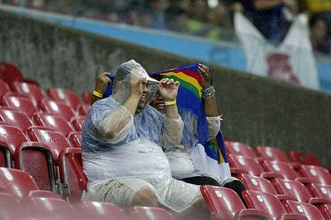 7h38: Mưa đang rơi khá nặng hạt tại Recife. Đây là điều không may dành cho ĐT Nhật Bản, đội bóng vẫn thường sử dụng lối chơi kỹ thuật, bóng ngắn