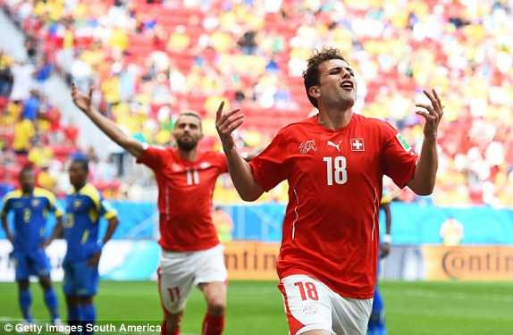 Sang hiệp 2, HLV lão làng Ottmar Hitzfeld đã có sự điều chỉnh. Mehmedi được tung vào sân và ở tình huống chạm bóng đầu tiên, cầu thủ mang áo 18 của Thụy Sỹ đã ghi bàn. Đó là pha đánh đầu sau tình huống phạt góc bên cánh trái.