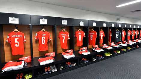 | Phòng thay đồ của ĐT Thụy Sỹ. Đội quân xứ đồng hồ sẽ ra sân với trang phục màu đỏ truyền thống. |