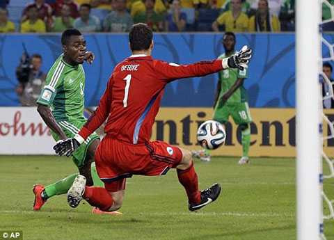 54' Pha phản công rất nguy hiểm của Nigeria được Onazi kết thúc bằng cú sút xa rất nhanh. Bóng đi chính giữa khung thành và không gây nguy hiểm cho Begovic.
