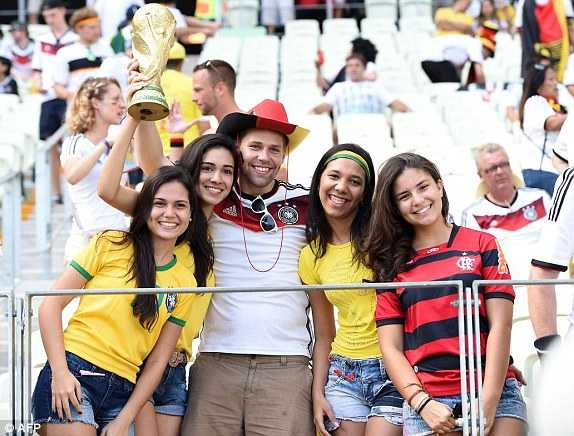 | CĐV Đức nhảy múa trên khán đài sân Castelao. |
