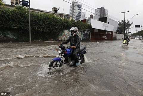 22h18: Mưa tại Recife đang khá to và rất nhiều con đường ở thành phố này đã bị ngập