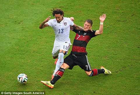 34' Đường chuyền dài khá tốt cho Jermain Jones băng lên phá bẫy việt vị, nhưng tiền vệ của ĐT Mỹ lại khống chế trượt bóng, nếu không anh đã có thể đối mặt với Neuer.