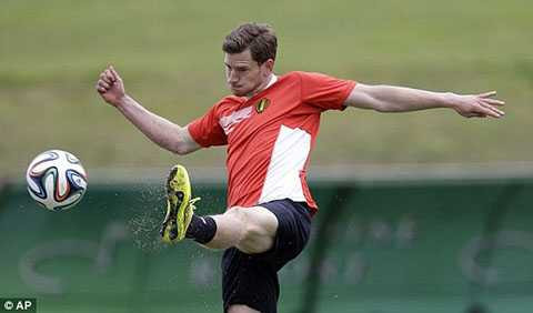 22h45: Vermaelen bất ngờ bị đau trong khi khởi động trước trận đấu