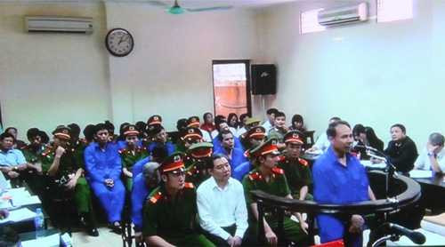 | Dương Chí Dũng cùng đồng phạm trong phiên xử phúc thẩm chiều nay 23/4 |