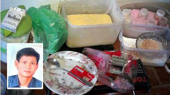 | Nguyễn Văn Hoàn và tang vật vụ án |